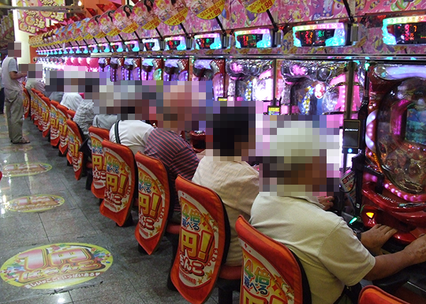 午後の4円パチンコで、とくに活気づいていたのが海物語シリーズ。プレイヤーたちは機種の特徴をうまく活かし、見事なパフォーマンスを披露していた。