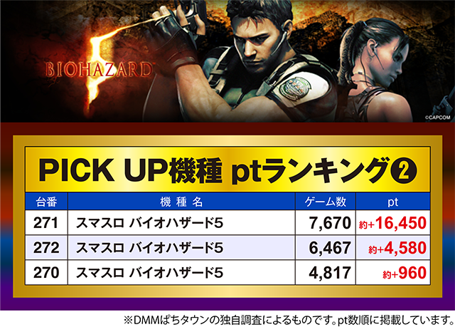 「スマスロ バイオハザード5」では、271番台が約+16,450pt。