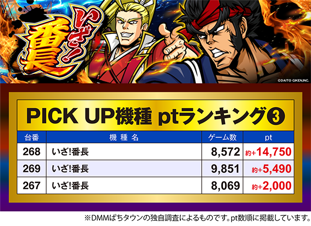「いざ!番長」は設置されている3台のすべてが約+2,000pt以上。