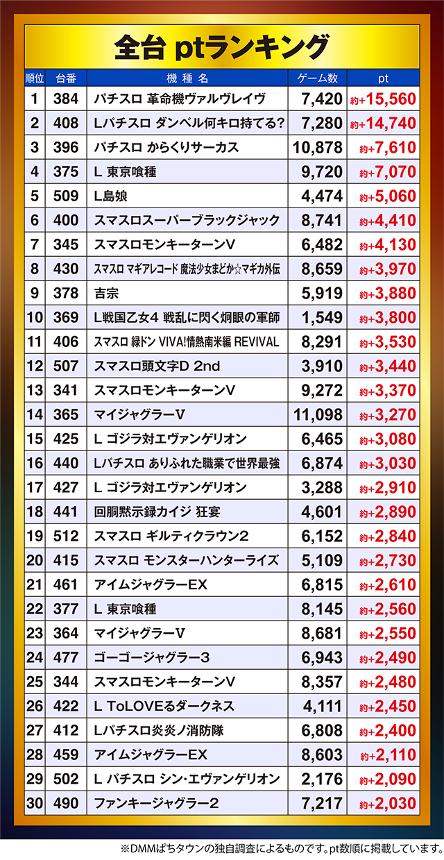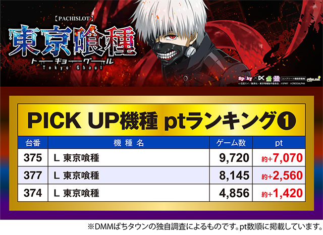 「L 東京喰種」の375番台が約+7,000ptオーバー。