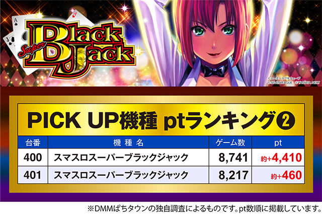 「スマスロスーパーブラックジャック」では、400番台が約+4,410pt。