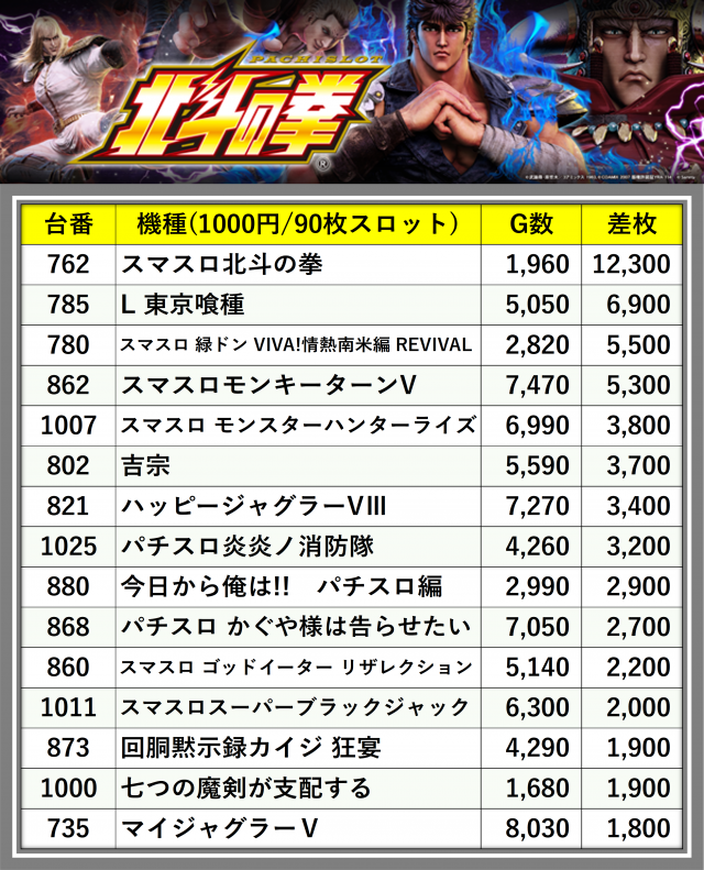 厳選された取材対象機種をはじめ、その他スロット全体から好記録が飛び出した!プレイヤーが楽しんだ1日を下記データにて振り返ってみて欲しい。