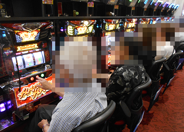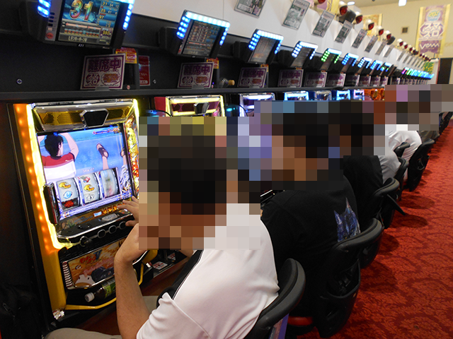 「キングハナハナ-30」や「マイジャグラーⅤ」など、あちこちに華やかな光景が広がっていた。