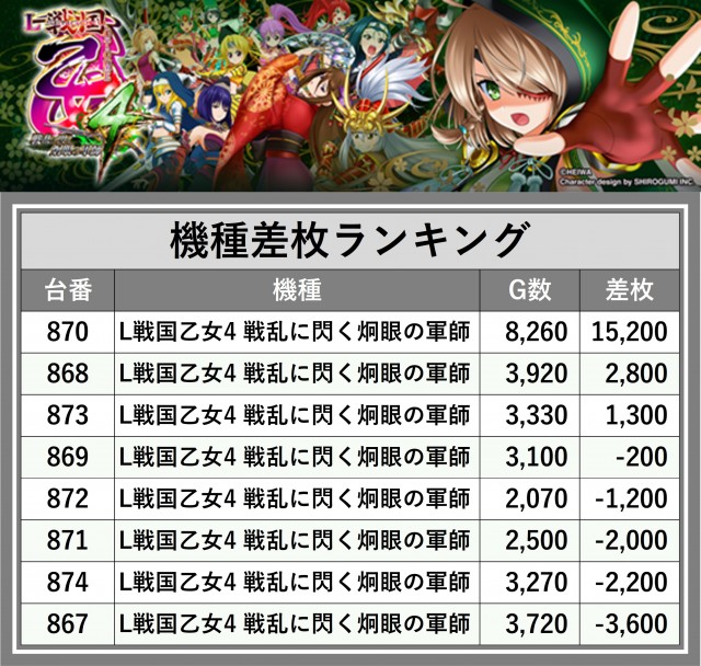 ※差枚数順に掲載しています
