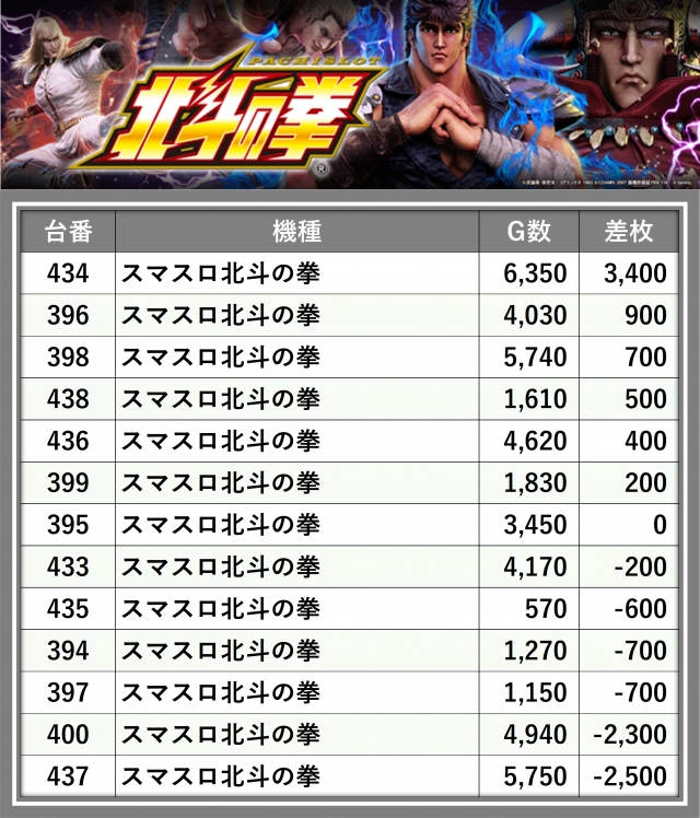 ※台番順に掲載しています