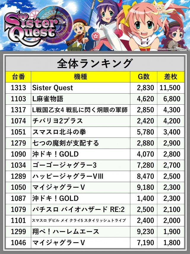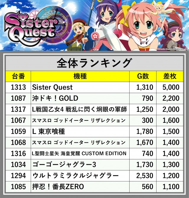 厳選された取材対象機種をはじめ、その他スロット全体から好記録が飛び出した!プレイヤーが楽しんだ1日を下記データにて振り返ってみて欲しい。