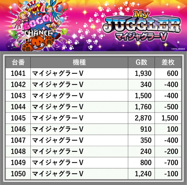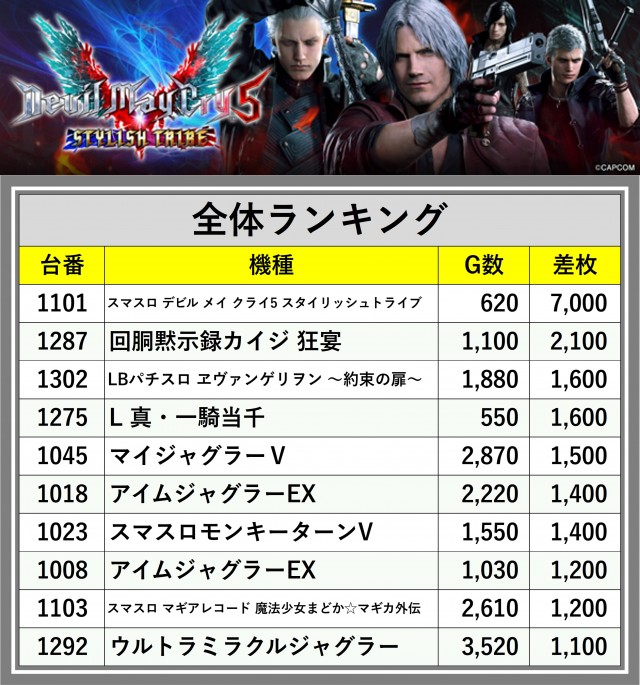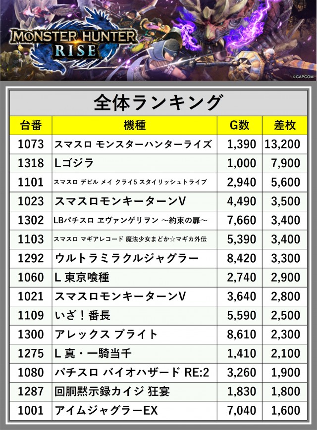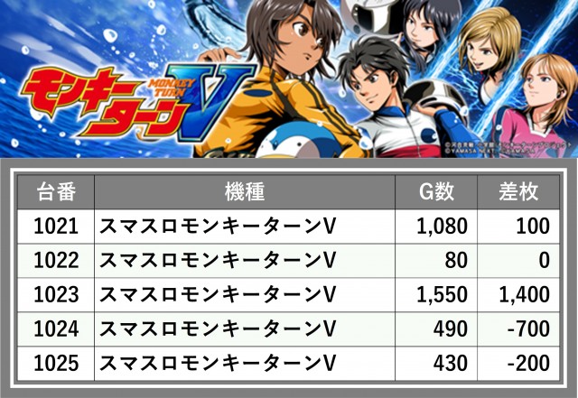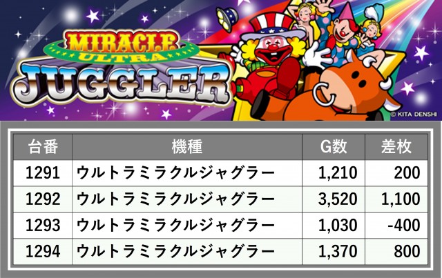 厳選された取材対象機種をはじめ、その他スロット全体から好記録が飛び出した!プレイヤーが楽しんだ1日を下記データにて振り返ってみて欲しい。