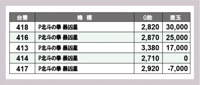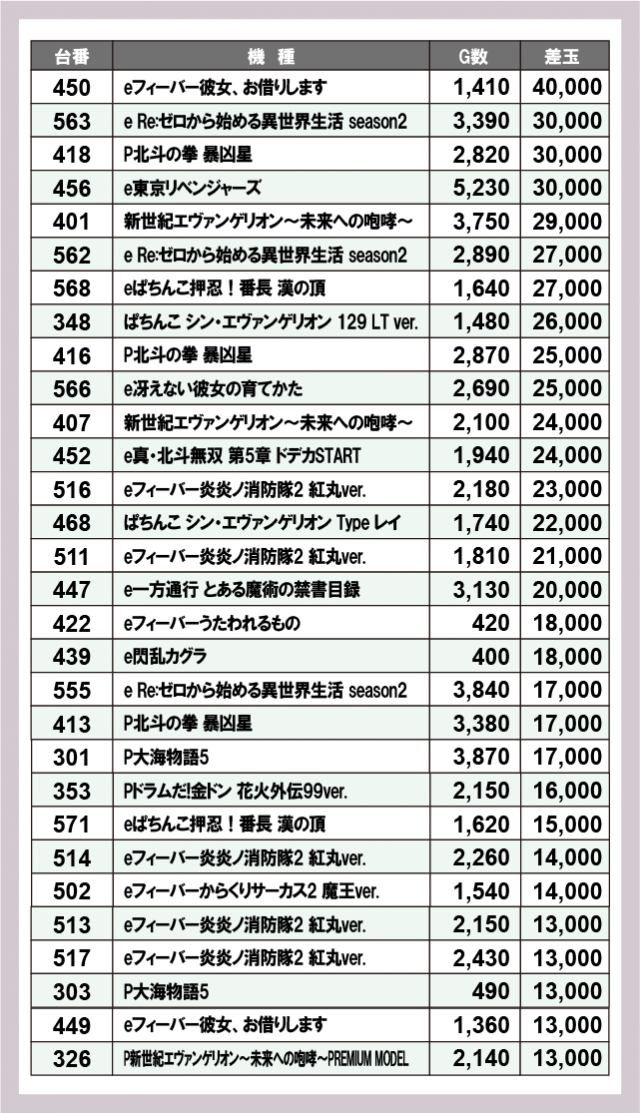 ※差玉数順に掲載しています