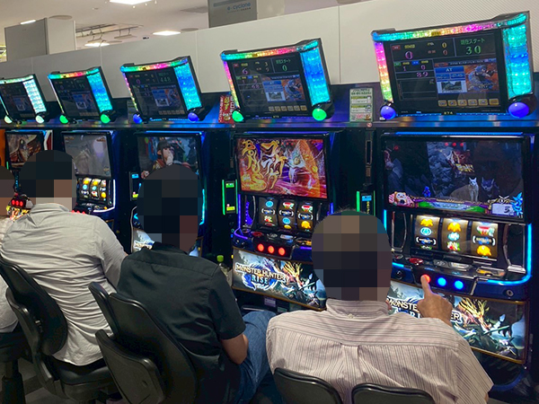 1000円/46枚パチスロに目を移すと、「スマスロ モンスターハンターライズ」や「スマスロ 緑ドン VIVA!情熱南米編 REVIVAL」、「スマスロ北斗の拳」で理想的な展開を迎えたプレイヤーがあちこちで見られ、皆、充実した時間を過ごしていた。