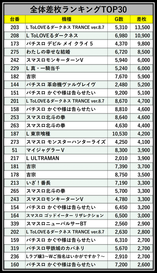 その結果の中から、ぱちタウンが注目すべきポイントを厳選してユーザーにお届け!プレイヤーが楽しんだ一日を下記データにて振り返ってみて欲しい。