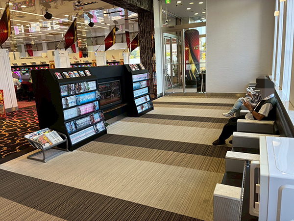 レストスペースには幅広いジャンルの漫画本が用意されており、取材時も満喫するプレイヤーが多かった。