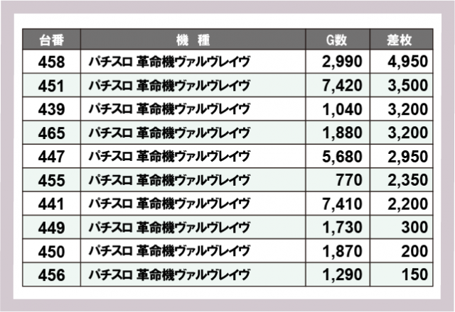※差枚数順に掲載しています