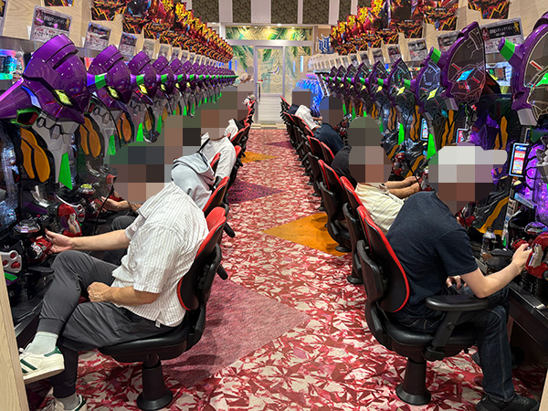 15時ごろの4円パチンコを見てみると、「P大海物語5スペシャル」や「新世紀エヴァンゲリオン〜未来への咆哮〜」が高稼働。プレイヤーの嬉しそうな表情を多数確認している。