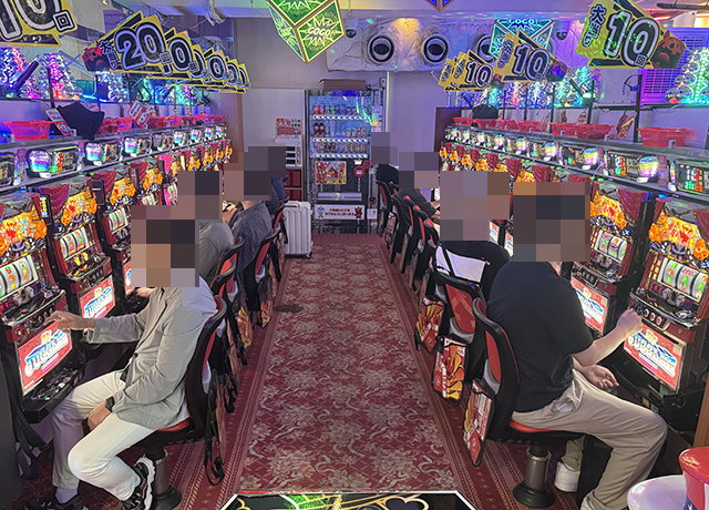 7月12日、東京都渋谷区にある「楽園渋谷道玄坂店」へと向かった。今回の取材は、「超CHANGE取材」だ。ジャグラーシリーズなどが人気を集めており、いくつもの台が輝いてみえた。