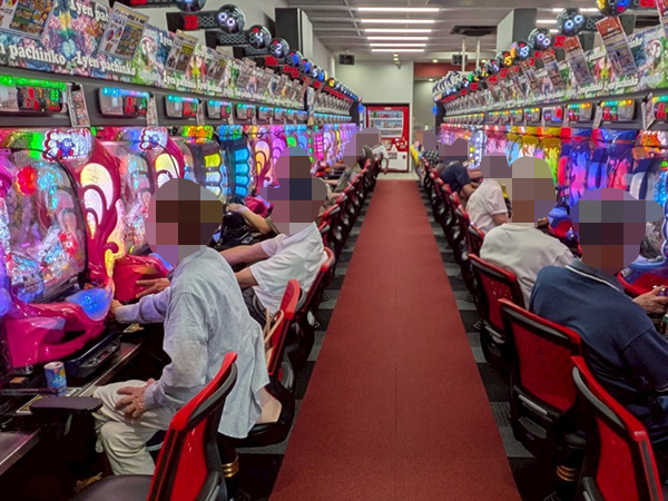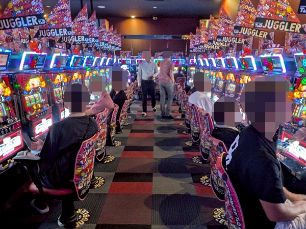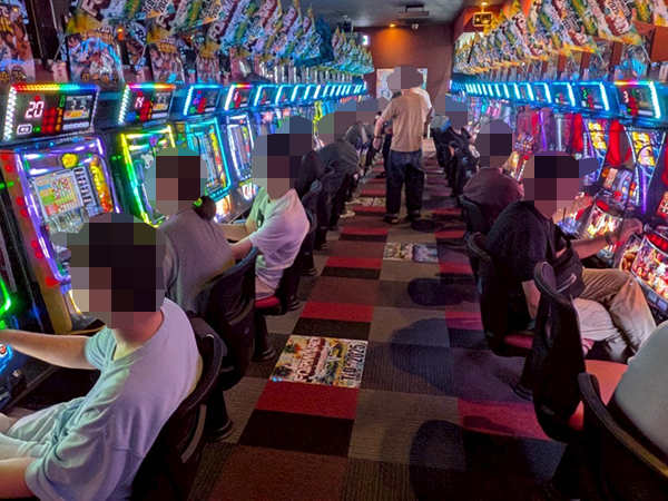 取材時は既に多くのプレイヤーが集結し、パチンコ・パチスロを問わずにぎやかな状況となっていた。