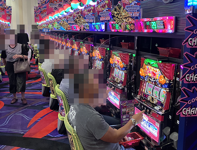 「アイムジャグラーEX」や「マイジャグラーⅤ」が人気を集めており、うれしそうに遊技をおこなっている姿も多かった。