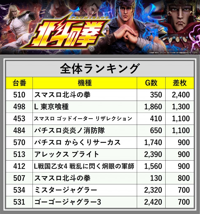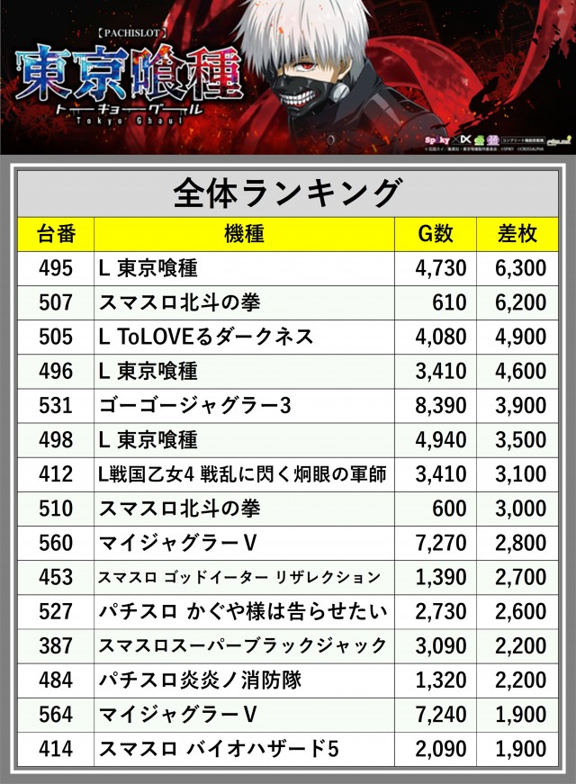厳選された取材対象機種をはじめ、その他スロット全体から好記録が飛び出した!プレイヤーが楽しんだ1日を下記データにて振り返ってみて欲しい。