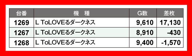『L ToLOVEるダークネス』は終日フル回転で、1269番台が大きな成果をあげている。