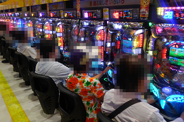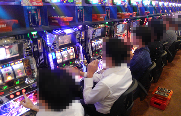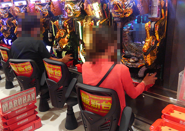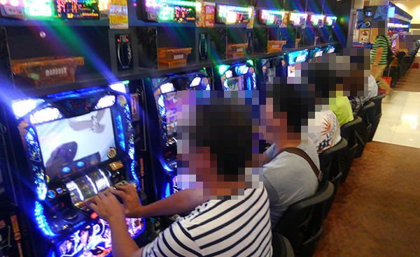夕方頃の4円パチンコでは、「CRスーパー海物語IN沖縄4」と「CR牙狼GOLDSTORM翔」が人気。盛り上がりも感じられ、プレイヤーたちは明るい笑みを浮かべていた。