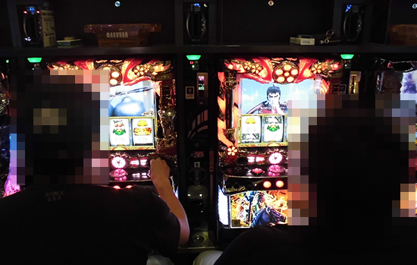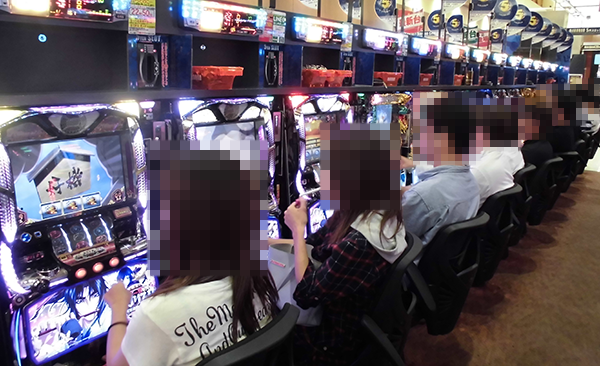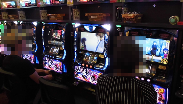 15時頃の20円パチスロでは、「バジリスク~甲賀忍法帖~絆」が盛況。プレイヤーたちのイキイキとした表情からは、機種の魅力を味わえていることがうかがえた。
