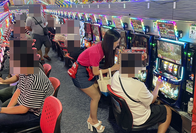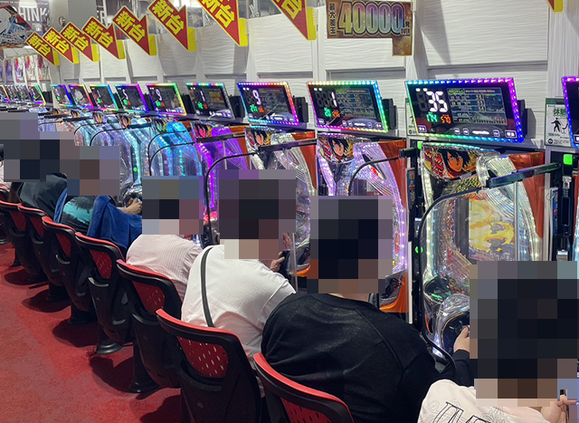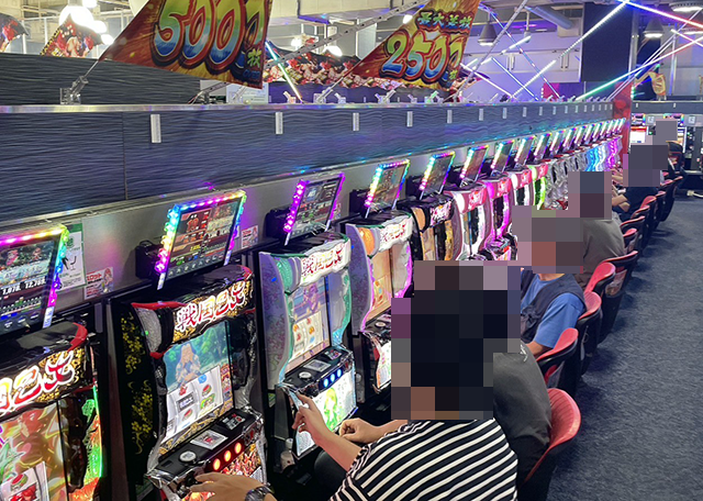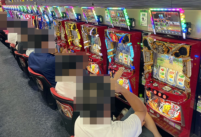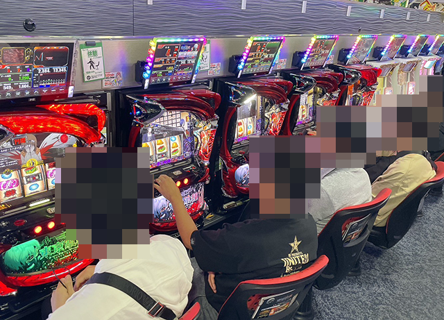 取材時のパチスロでは、「L 東京喰種」や「いざ!番長」など、いろいろな機種が満席!