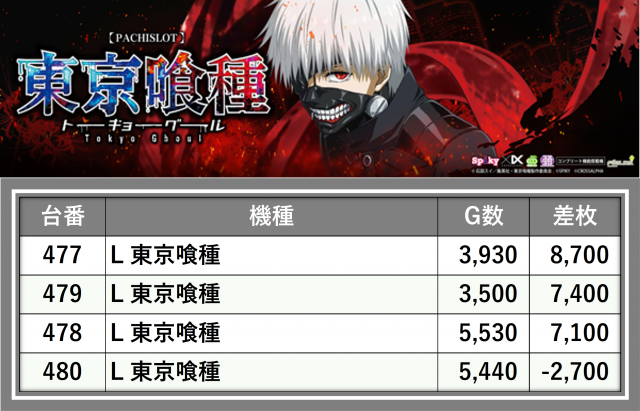 ※台番順に掲載しています