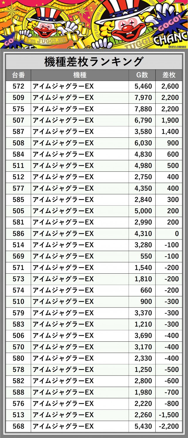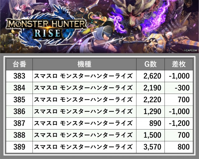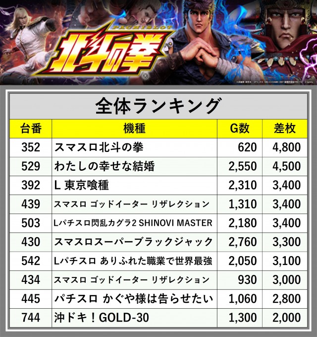 厳選された取材対象機種をはじめ、その他スロット全体から好記録が飛び出した!プレイヤーが楽しんだ1日を下記データにて振り返ってみて欲しい。
