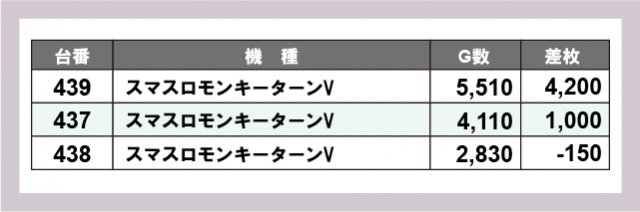 ※差枚数順に掲載しています