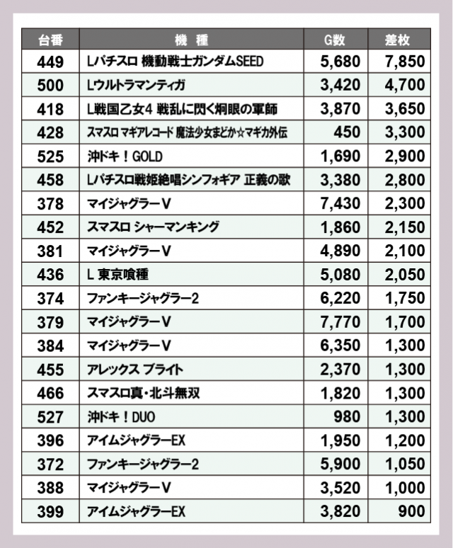 機種別差枚ランキング