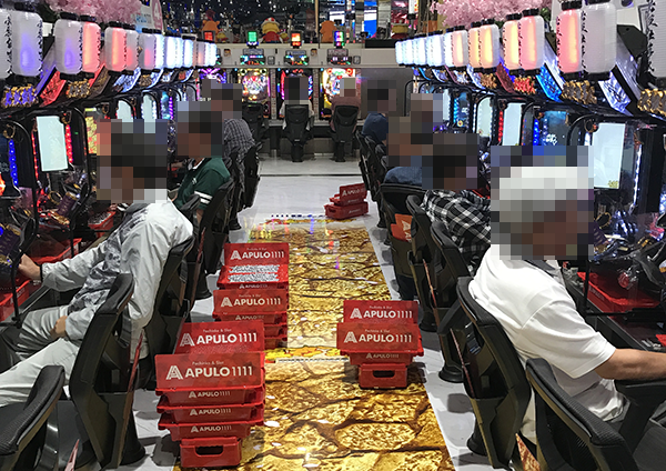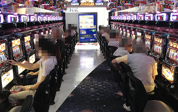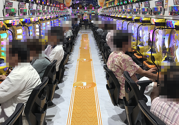 「押忍!番長3」や「ミリオンゴッド-神々の凱旋-」なども盛況となっており、シマ内は楽しげな雰囲気。