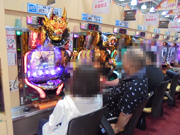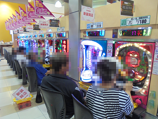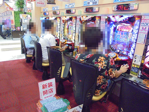 パチンコの低貸し玉コーナーも注目度が高い。明るい表情のプレイヤーは充実した時間を過ごせていたことだろう。