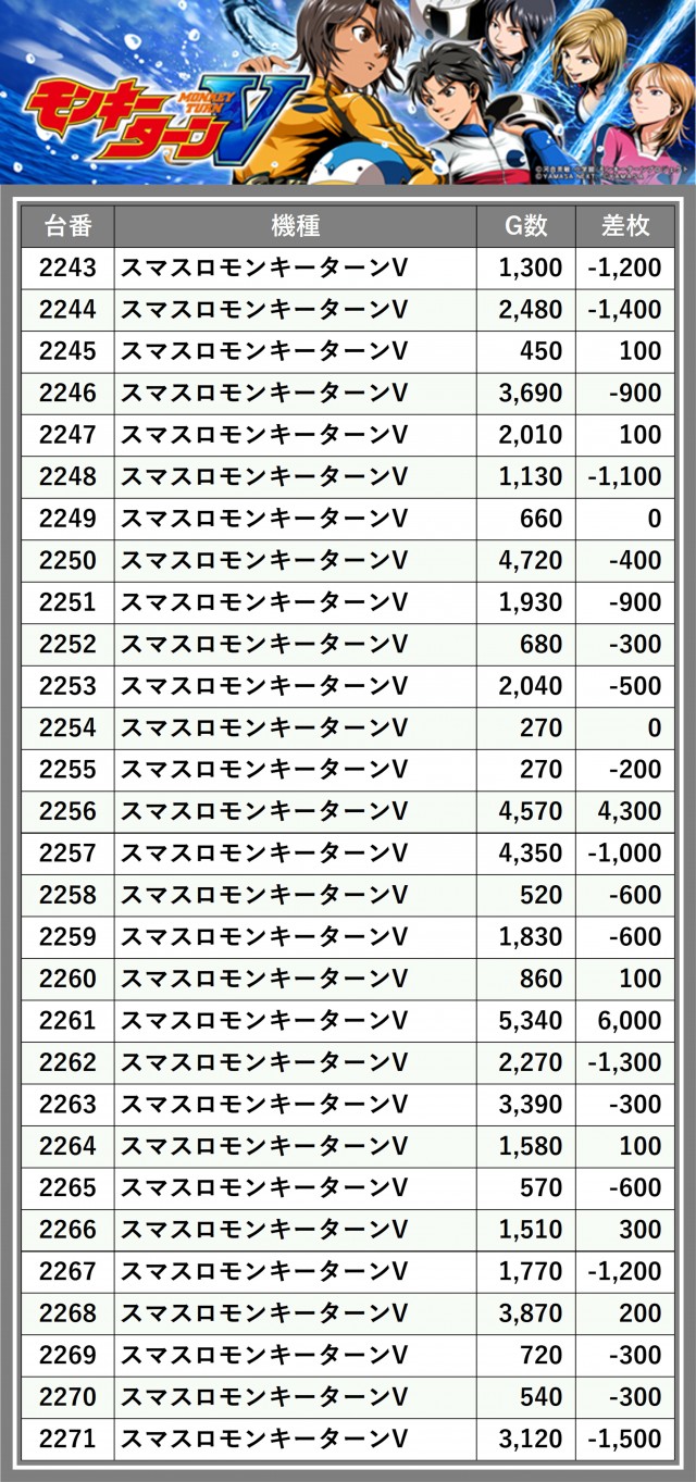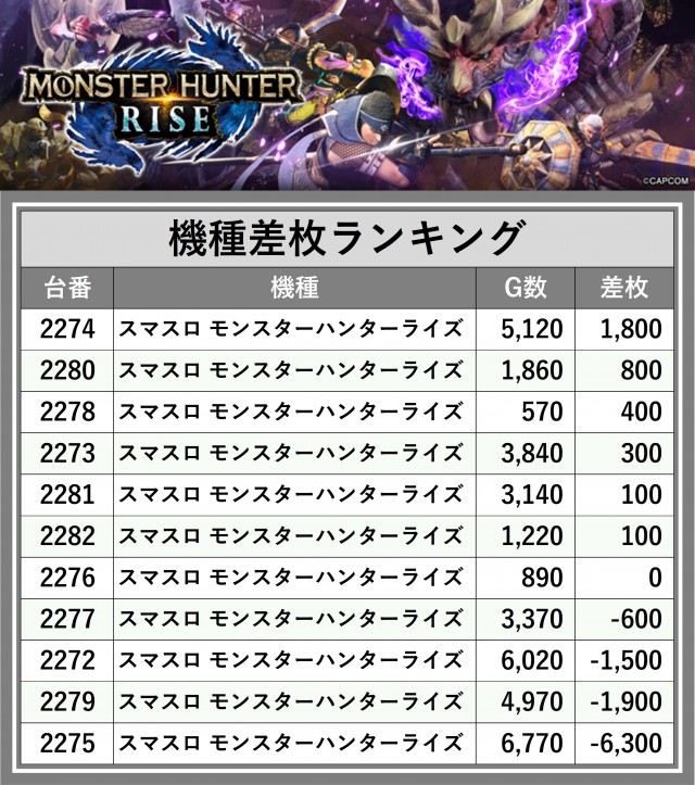 厳選された取材対象機種をはじめ、その他スロット全体から好記録が飛び出した!プレイヤーが楽しんだ1日を下記データにて振り返ってみて欲しい。