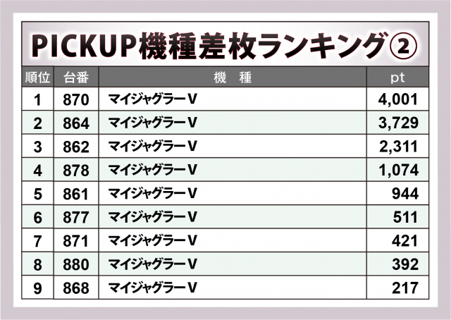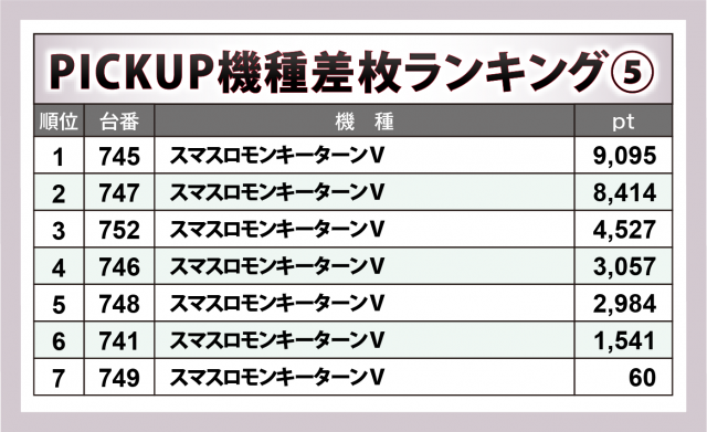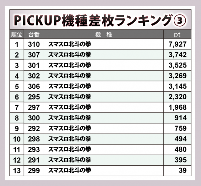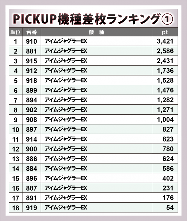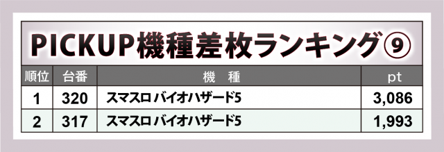 ここからは、入手した出玉データにより当日の優秀台に迫っていく。