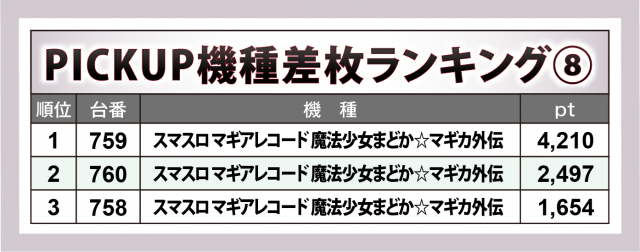 『スマスロ マギアレコード 魔法少女まどか☆マギカ外伝』6台はピッタリ半分がプラスかつその3台が全て4桁プラス。+4千2百超・+2千5百弱・+1千7百弱と、他機種に匹敵していた。
