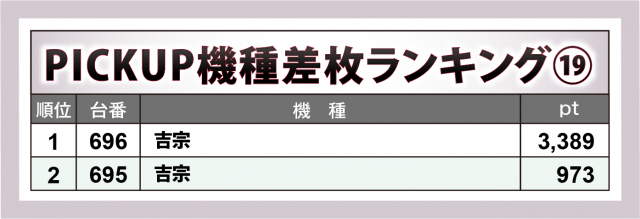 『吉宗』3台では2台がプラス、696番台が+3千4百弱のpt数を導いた。