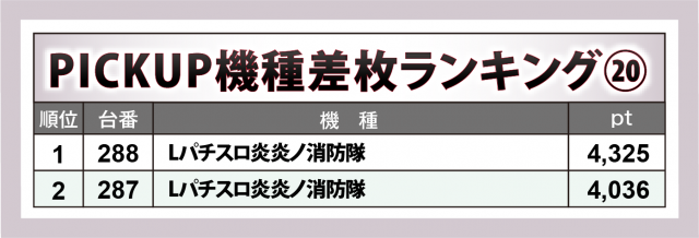 『Lパチスロ炎炎ノ消防隊』5台はプラス台数に恵まれなかったが、その2台が互いに+4千オーバーに終わった。