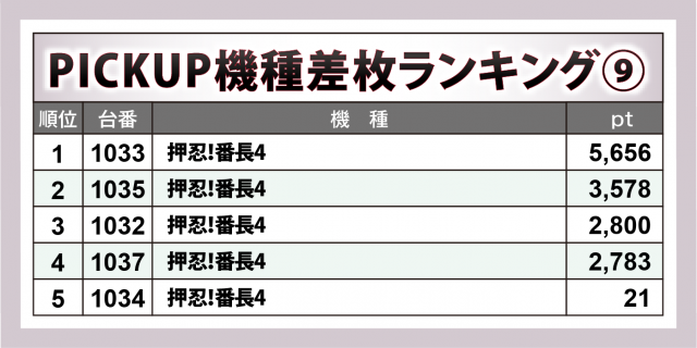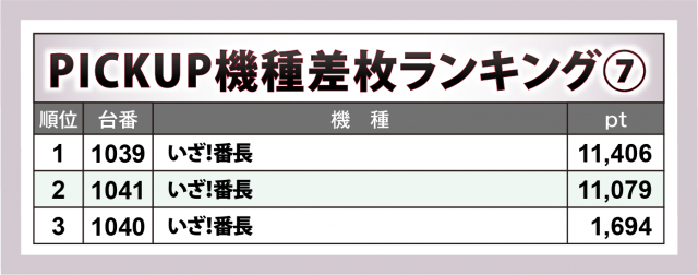 『いざ!番長』4台も勝利した3台が皆4桁以上のプラスで、1039・1041番台の双方が5桁プラスを計上した。