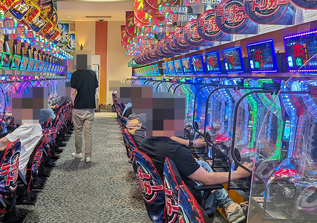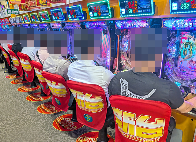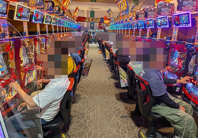 最新機種が注目されており、新台の「e マギアレコード 魔法少女まどか☆マギカ外伝」が満席かつ盛況。