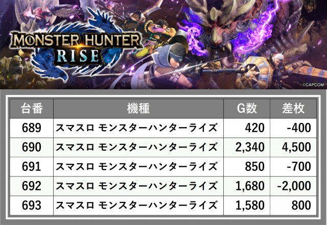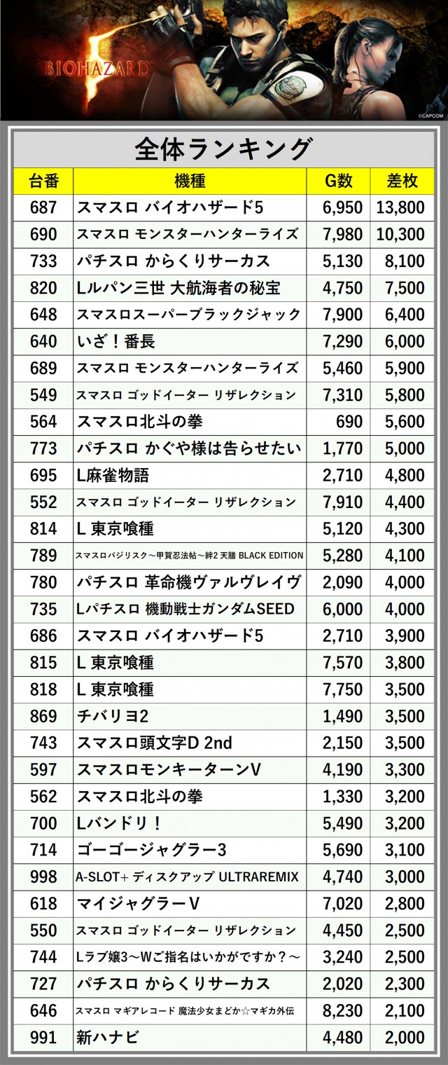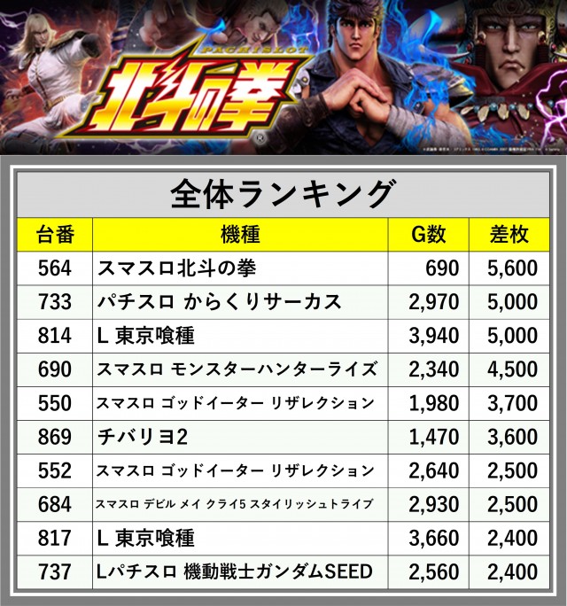 厳選された取材対象機種をはじめ、その他スロット全体から好記録が飛び出した!プレイヤーが楽しんだ1日を下記データにて振り返ってみて欲しい。