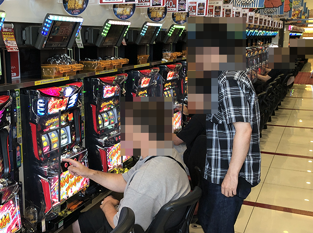 15時半を過ぎた頃のパチスロは、ハナハナシリーズがとくに盛況。
