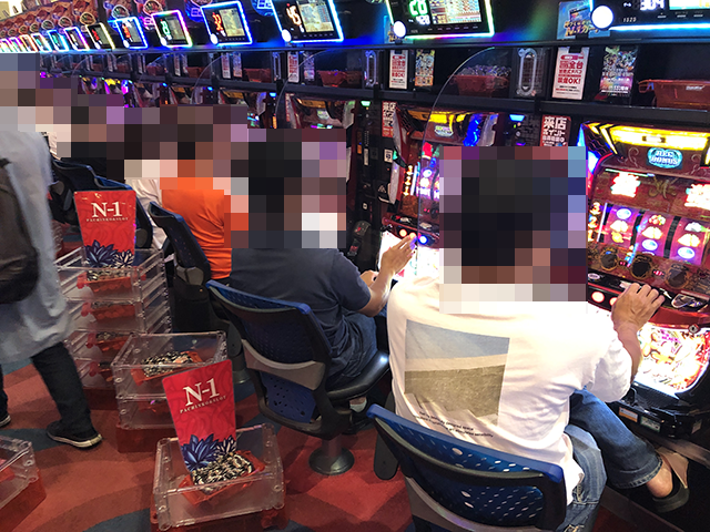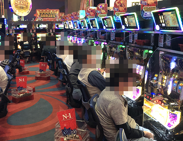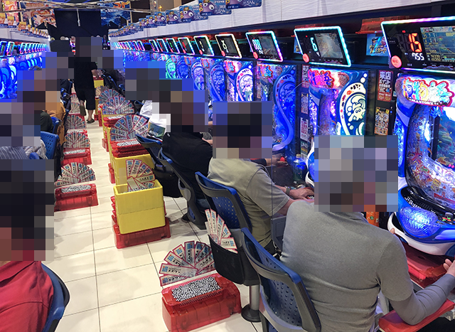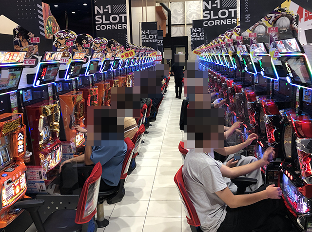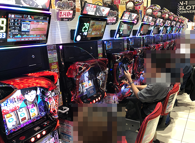 本気が伝わってくるシーンをカメラにおさめるべく、まずはパチスロコーナーをみていこう。