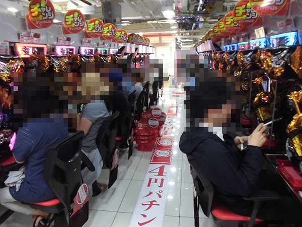 4円パチンコにおいて、とくに注目を集めていたのが「CR牙狼GOLDSTORM翔」。プレイヤーたちのイキイキとした表情からは、充実した時間を過ごせていることが伝わってきた。
