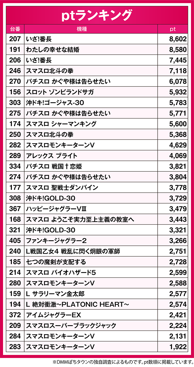 ※なお、本記事中のデータは全てDMMぱちタウンの独自調査によるものです
