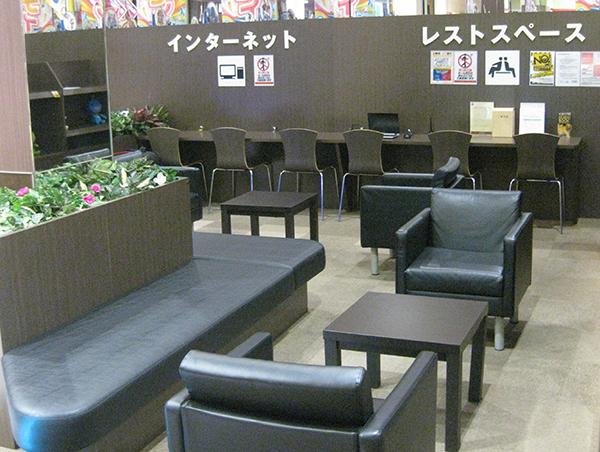 ホール内にはレストスペースや食事処が完備。休憩時はくつろぎつつ、小腹を満たすのもよいだろう。