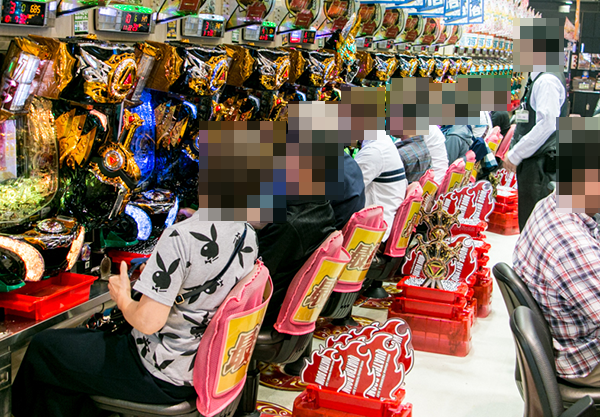 店内をのぞいてみると、パチンコとパチスロの両方が大にぎわいとなっていた。