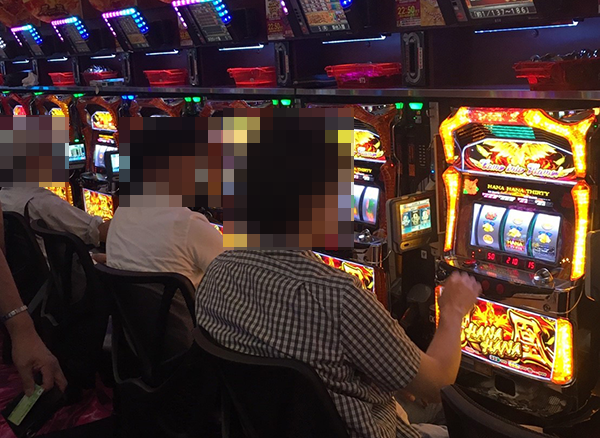 『ハナハナ鳳凰-30』の稼働率も高く、笑顔で遊技を楽しんでいる姿も目撃!