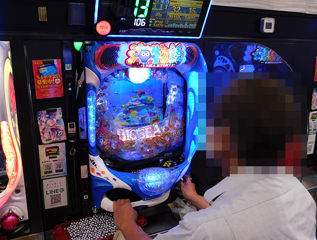 「P大海物語5スペシャル」でも、持ち玉で遊技をおこなっているプレイヤーを発見。