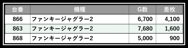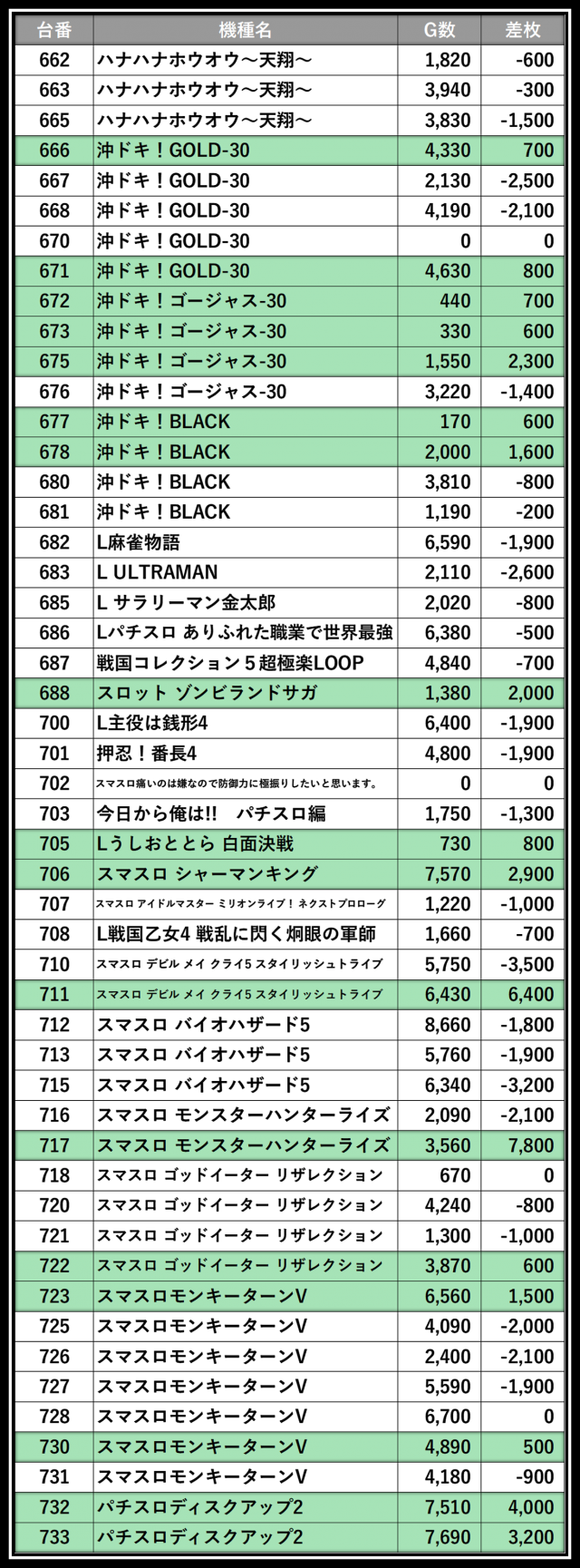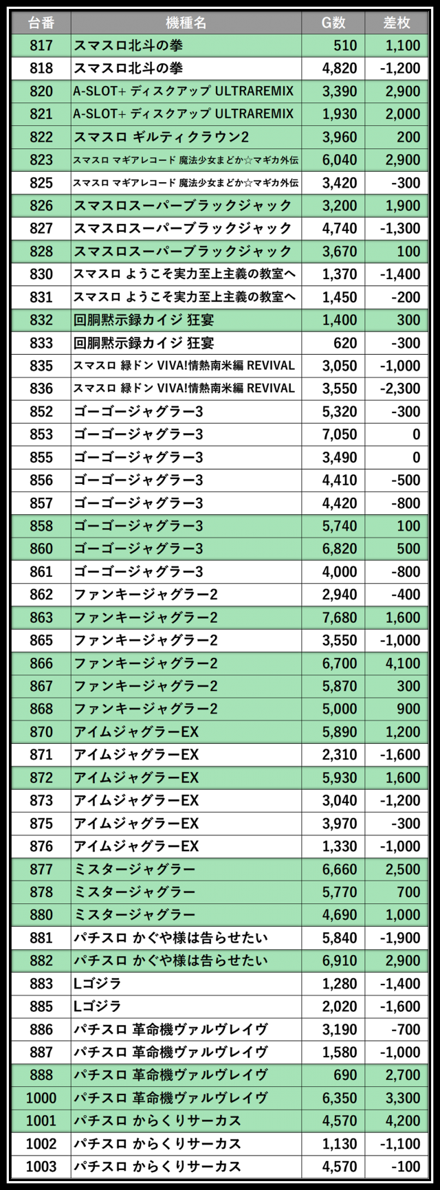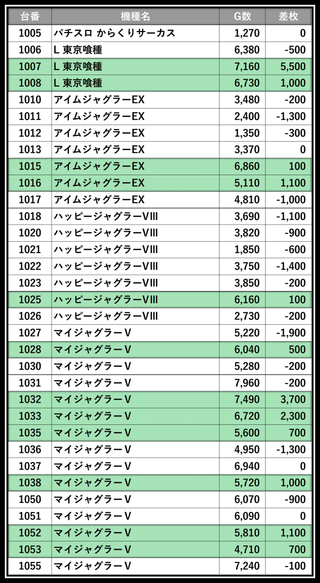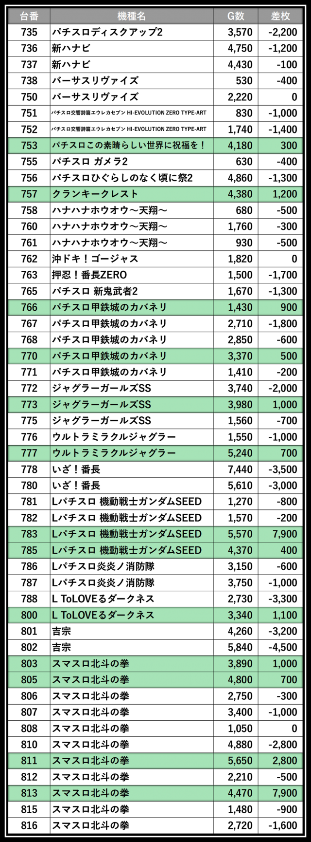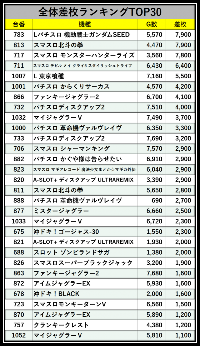 ※差枚数順に掲載しています