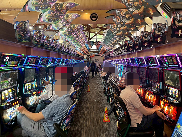 1000円/46枚パチスロに目を移すと、「パチスロ かぐや様は告らせたい」や「L 東京喰種」、「スマスロ モンスターハンターライズ」で理想的な展開を迎えたプレイヤーがあちこちで見られ、皆、充実した時間を過ごしていた。