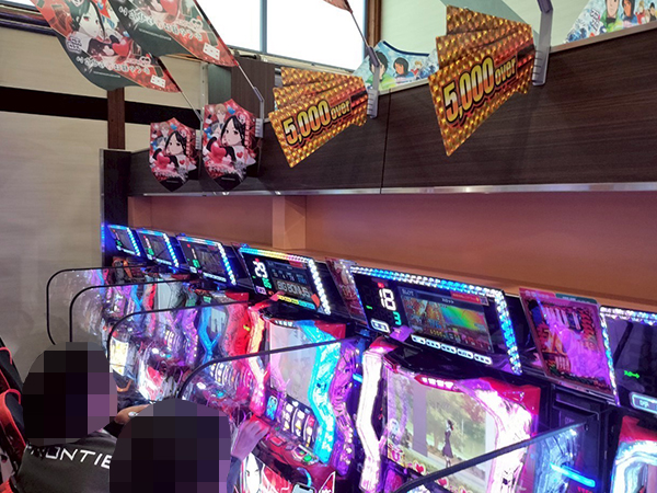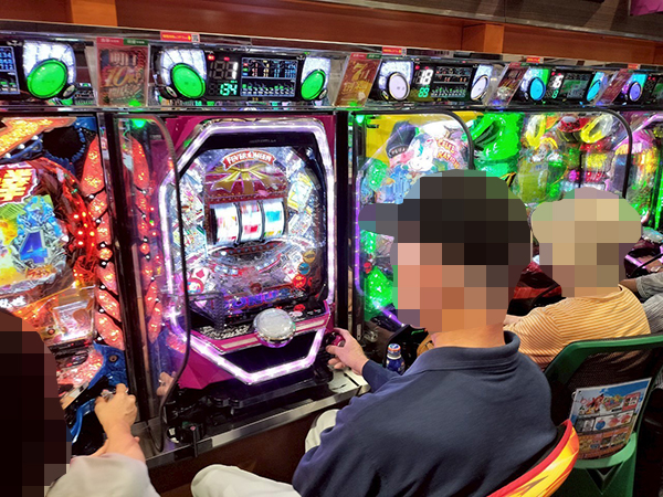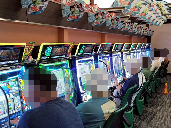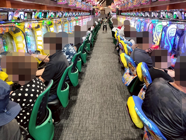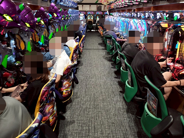 取材時は多くのプレイヤーが来店。パチンコ・パチスロともに、様々な機種が支持を得ていた。